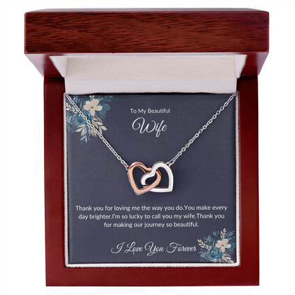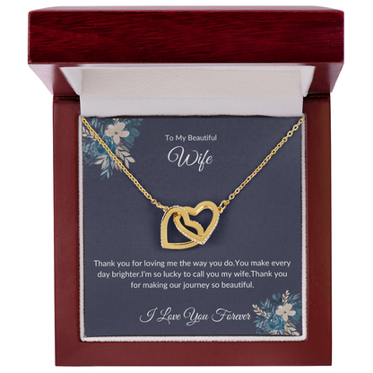 Give her the gift that symbolizes your never-ending love. Featuring two lovely hearts embellished with cubic zirconia crystals, this Interlocking Hearts necklace is the perfect accessory for everyday wear. Whether it's a memorable anniversary or a special birthday, make sure to dazzle your special someone by gifting them this stunning necklace.