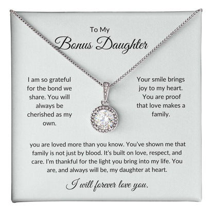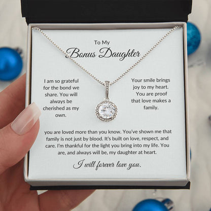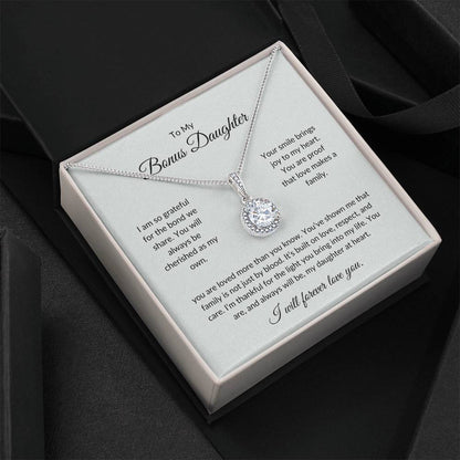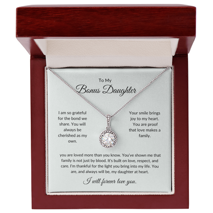Celebrate your precious bonus daughter with this elegant Love Knot Necklace. A meaningful piece of jewelry that symbolizes family connection and endless love.